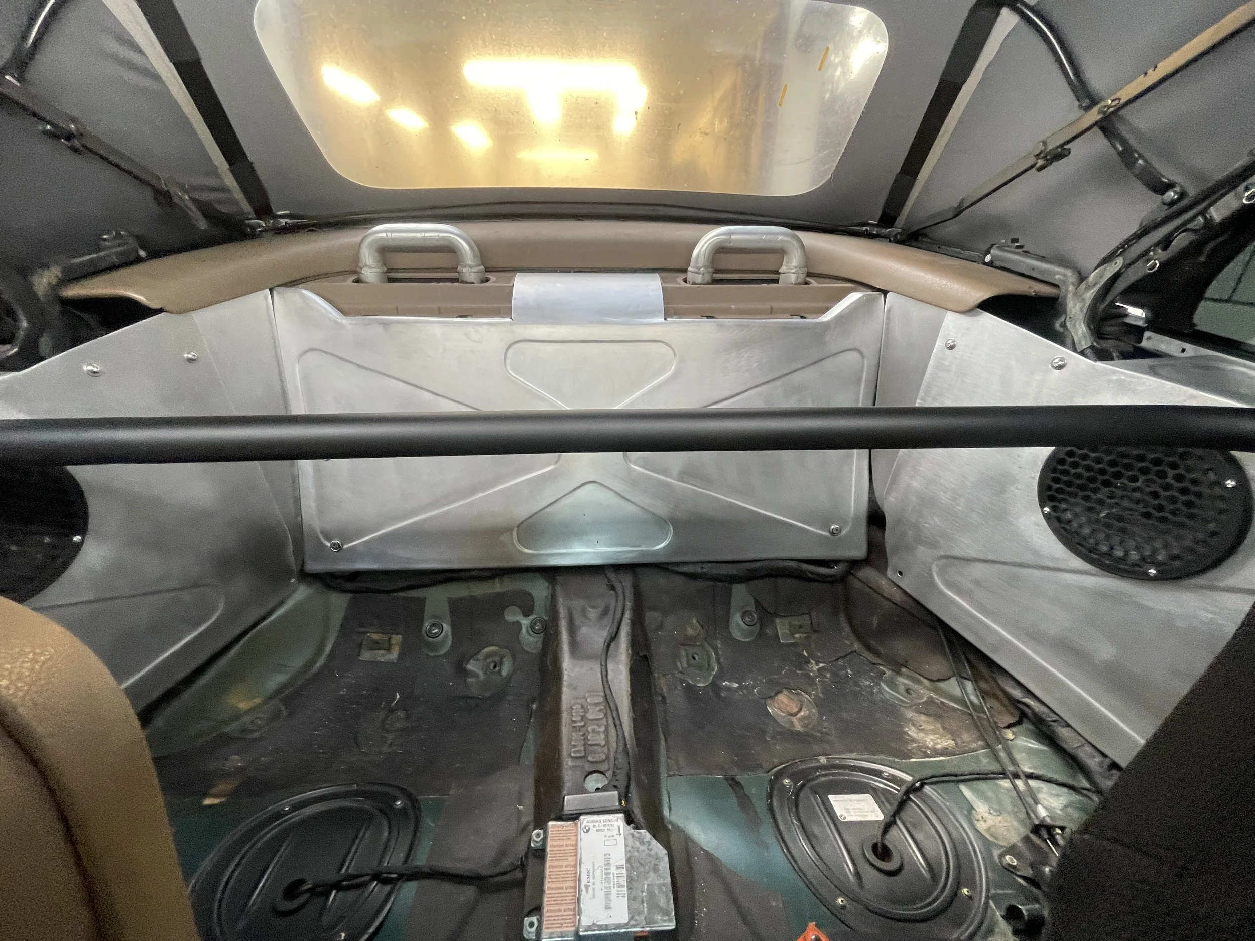 To match the design aesthetic of the front door cards and tie in the floor plates, I began working on some rear panels. These panels hide all the original structure, cutouts, and wire management running to the rear of the car.